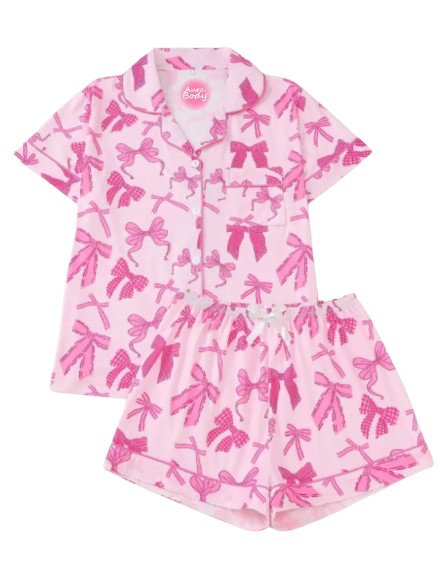 The Aura Body™ Shabby Chic Bow Pajama Set is perfect for your tween’s GRWM or GURWM moments. Featuring a soft button-up top and elastic waist shorts, this comfy set is made for lounging or a chill, stylish look.